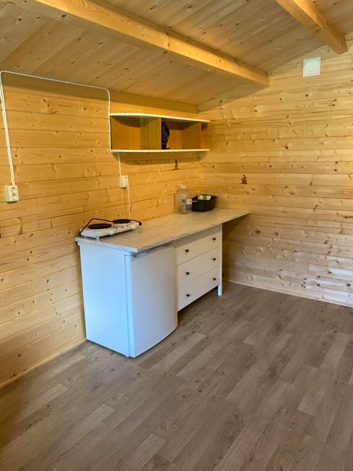 Med kjøyeseng, spisegruppe, kjøleskap med liten fryser og kjøkkenkrok med kokeplater, kasseroller, stekepanne og nødvendige redskaper. Hytta har også vaskekum med såpe, svamp, klut og kjøkkenhåndkle, samt varmeovn og vaskeutstyr (kost, bløtte, støvbrett, vaskestav). Såpen kan brukes til både oppvask og vask av gulv og overflater.