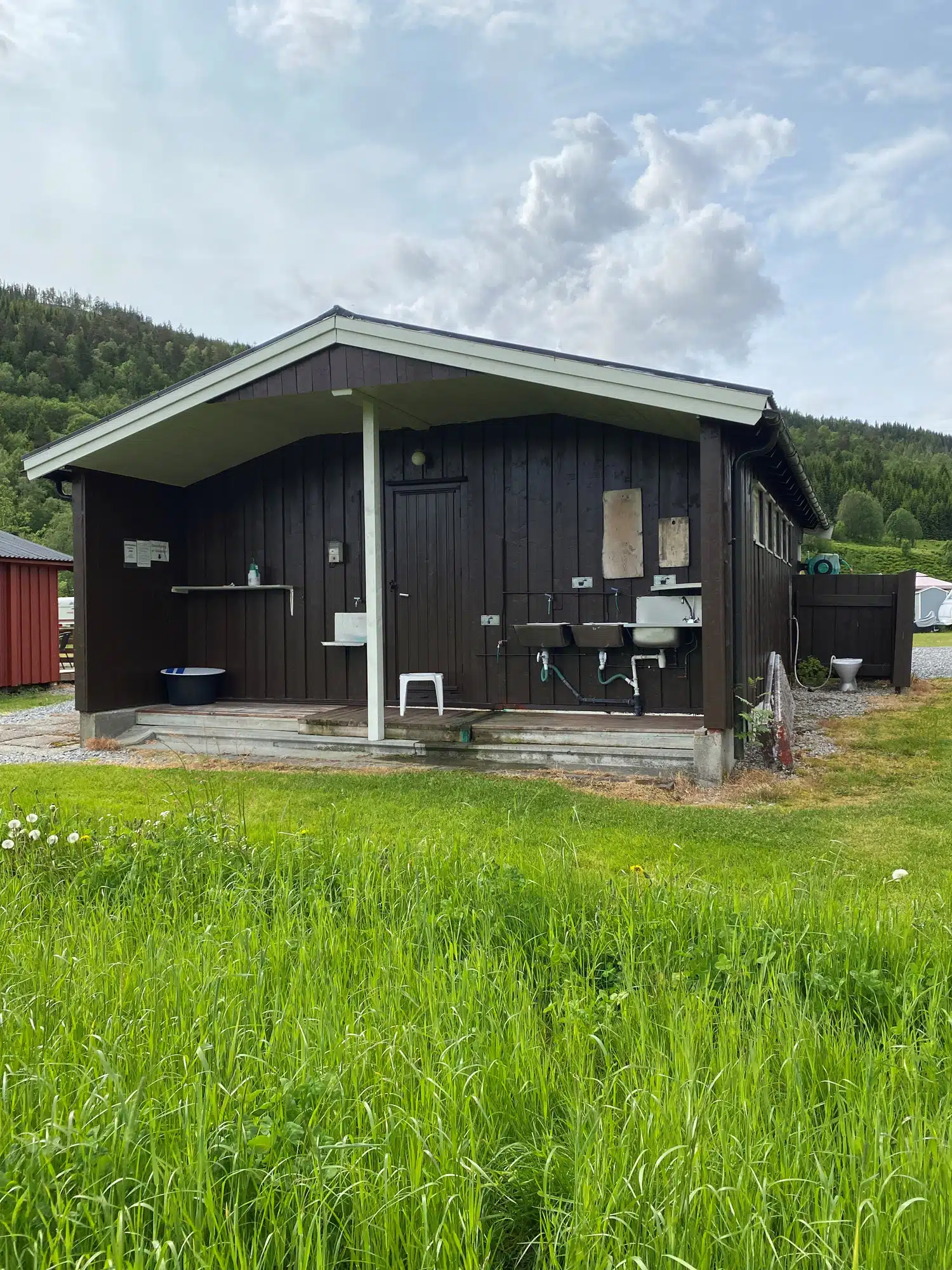 Vannslange, tømming av septik og gråvann for bobiler og campingvogner på venstre side av anlegget. Vaskekommer og desinfisering av fiskeutstyr på baksiden av anlegget.